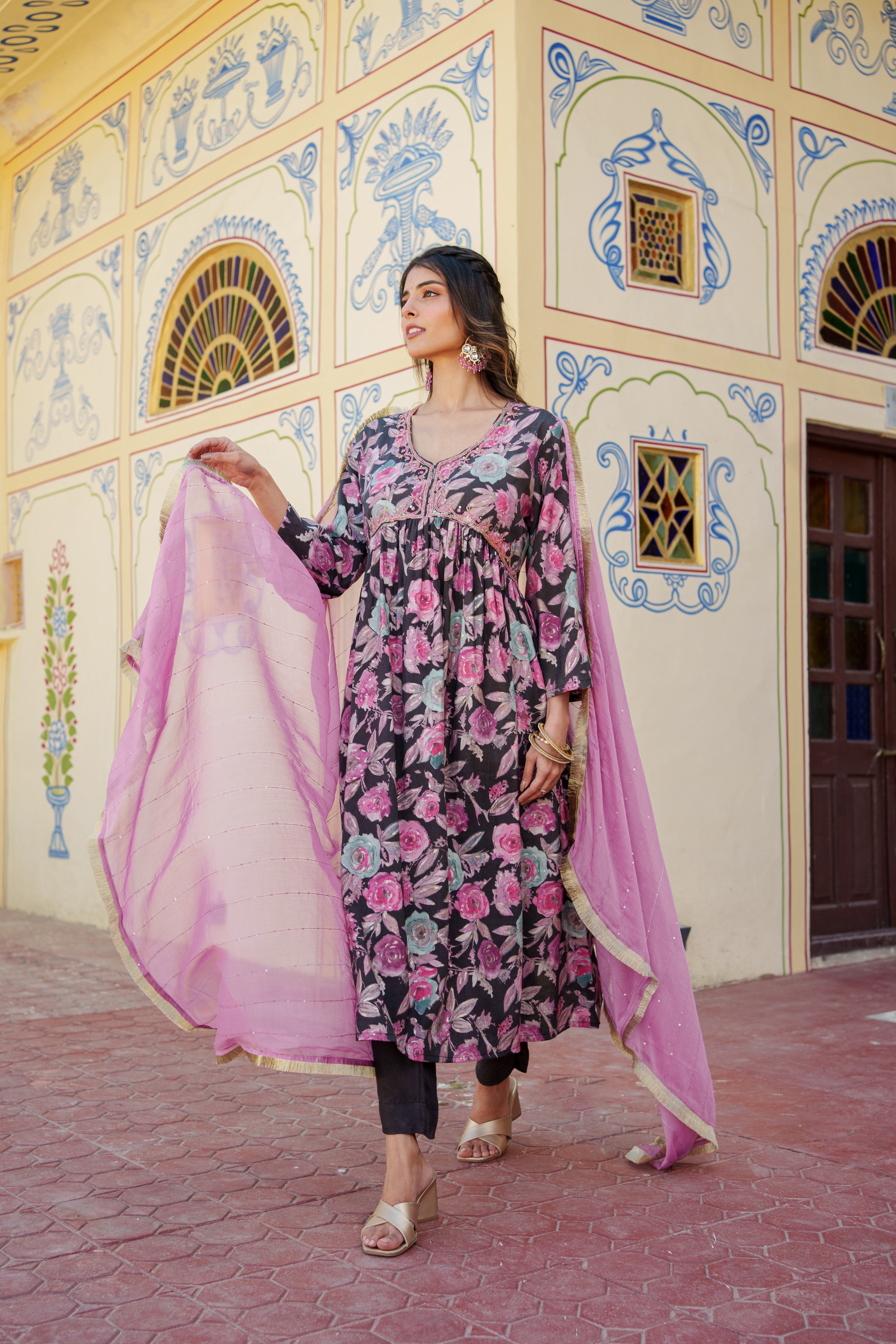 Grace meets elegance in this Teal Alia Cut Kurta Set, beautifully adorned with intricate bead work. The flowy silhouette and subtle embellishments make it a perfect choice for festive occasions and intimate gatherings.