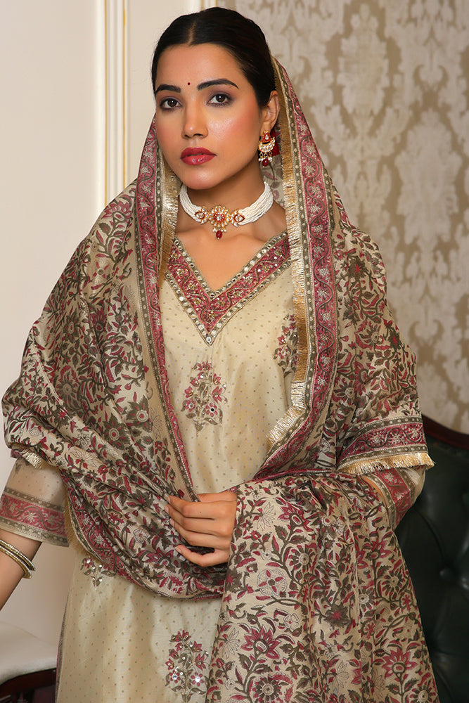 • Kurta Style: Straight-fit Chanderi kurta with classic block print and detailed embroidery