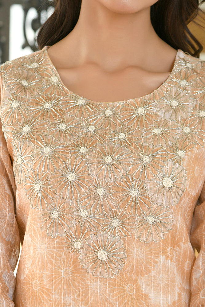 Soft, feminine, and effortlessly stylish — this Pink Tissue Linen Embroidered Kurta Set beautifully captures the spirit of modern festive dressing. Featuring intricate embroidery on a solid tissue linen base, paired with solid pants and a vibrant printed dupatta, this set is perfect for festive mornings, family gatherings, and elegant daytime occasions.